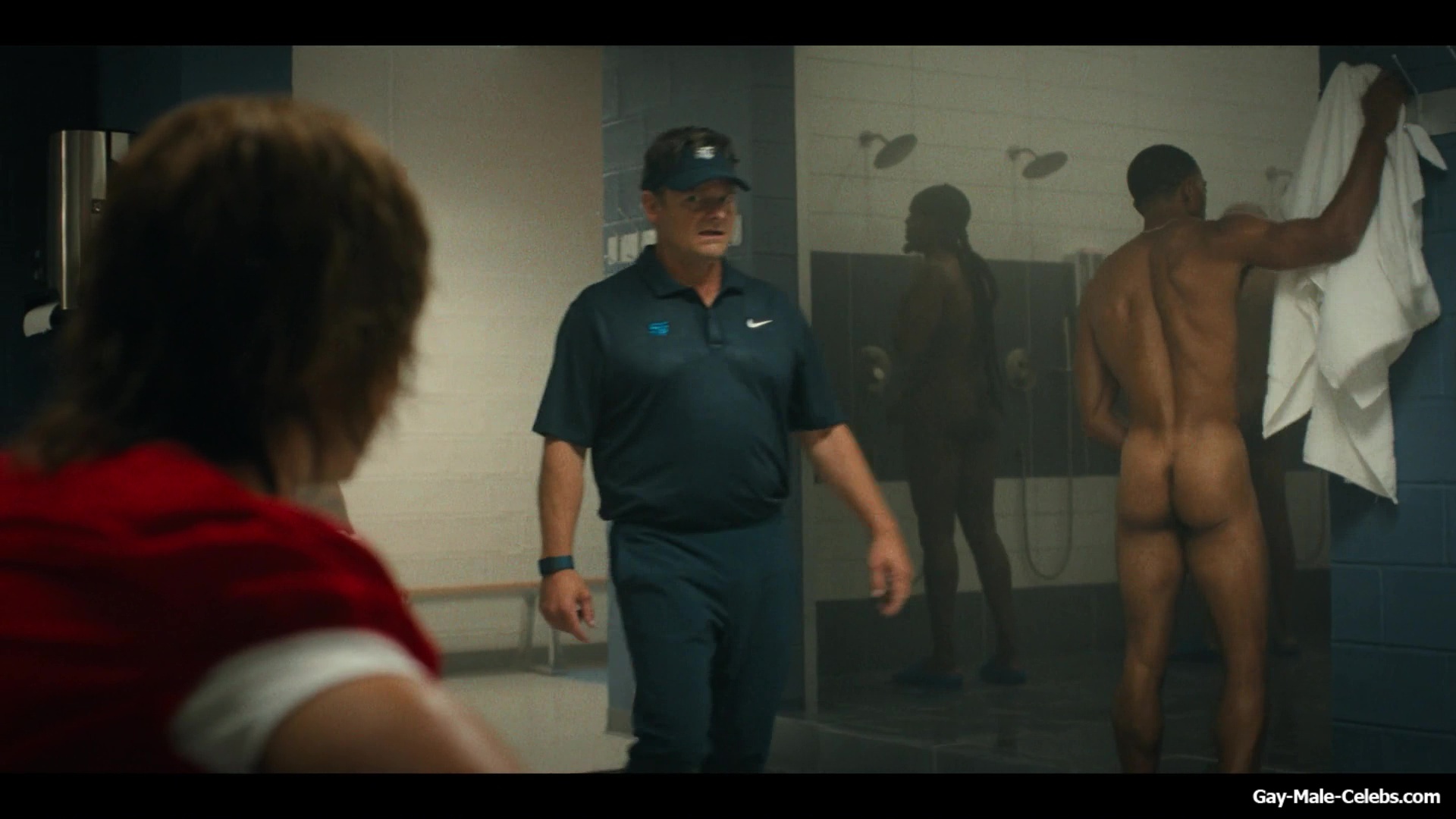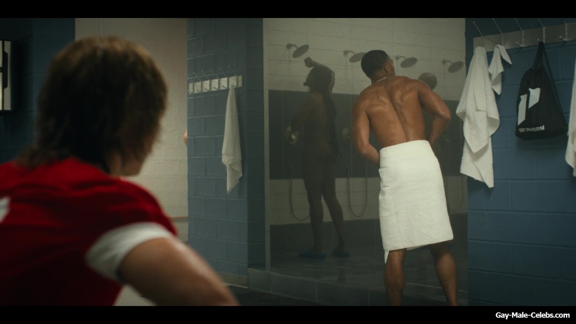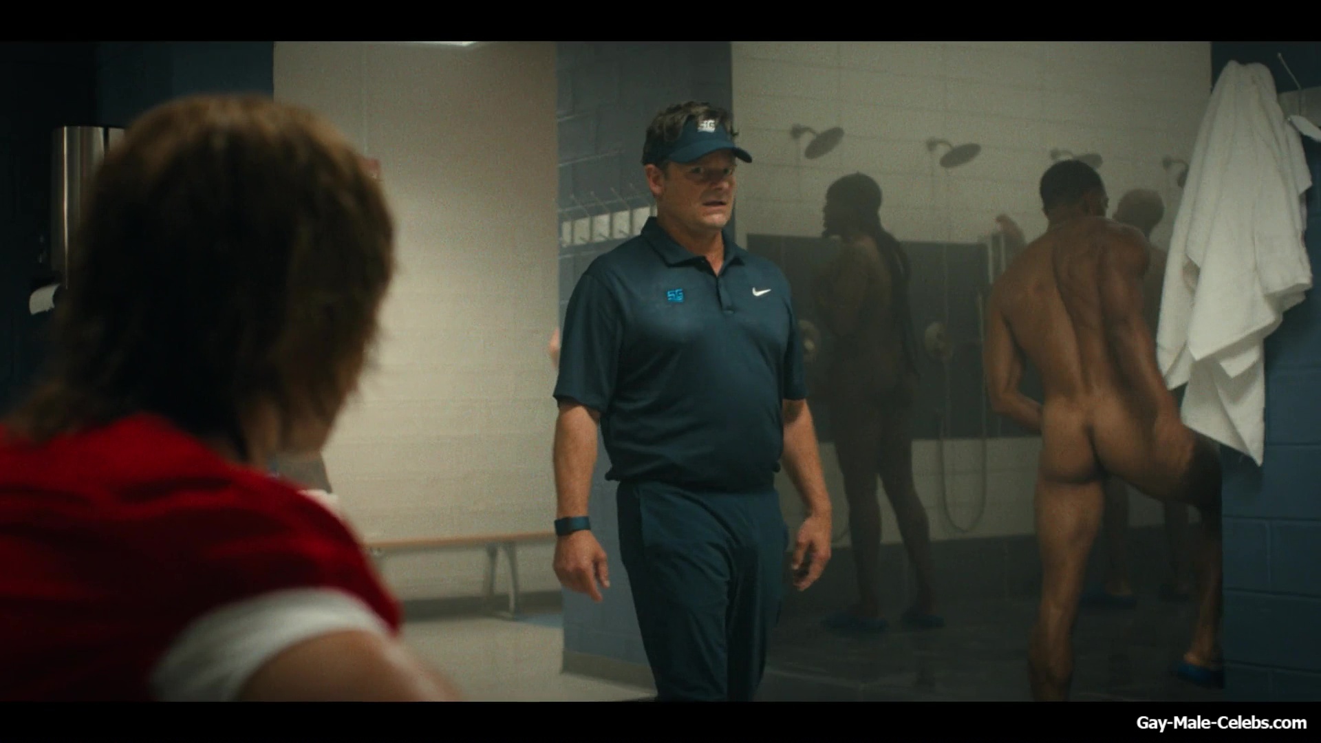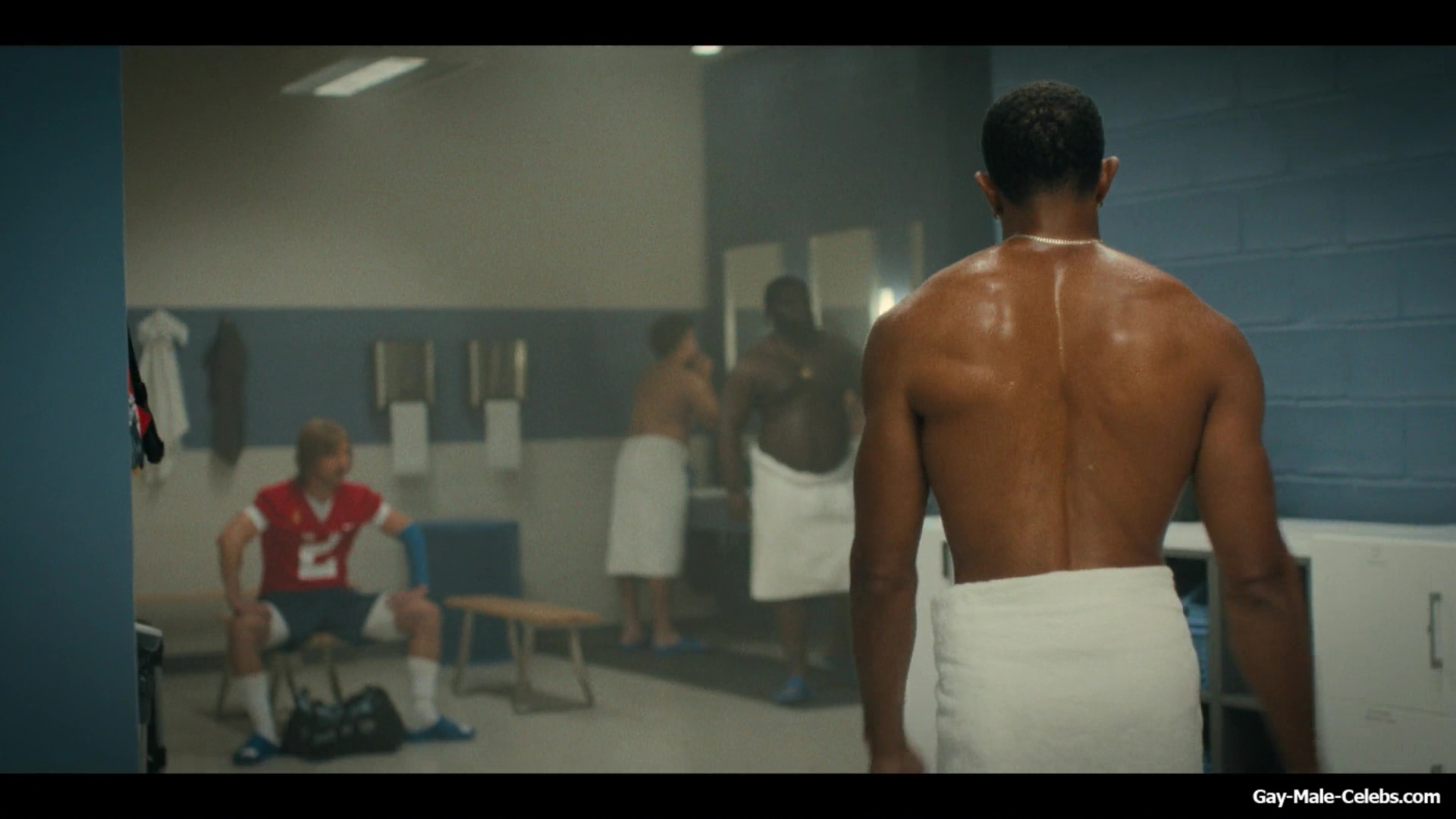 Wow, as soon as you see Xavier Mills’s muscular physique, you’ll immediately fall in love with this black stud. And when he gets naked, we’re sure that no one will be able to hold their dirty thoughts. In “Chad Powers” Xavier Mills showed us his charms in all their glory. While in the locker room, he decides to take a shower and, of course, takes off his towel. Xavier Mills nude firm butt is right in front of us, and all we can do is feast our eyes on it.