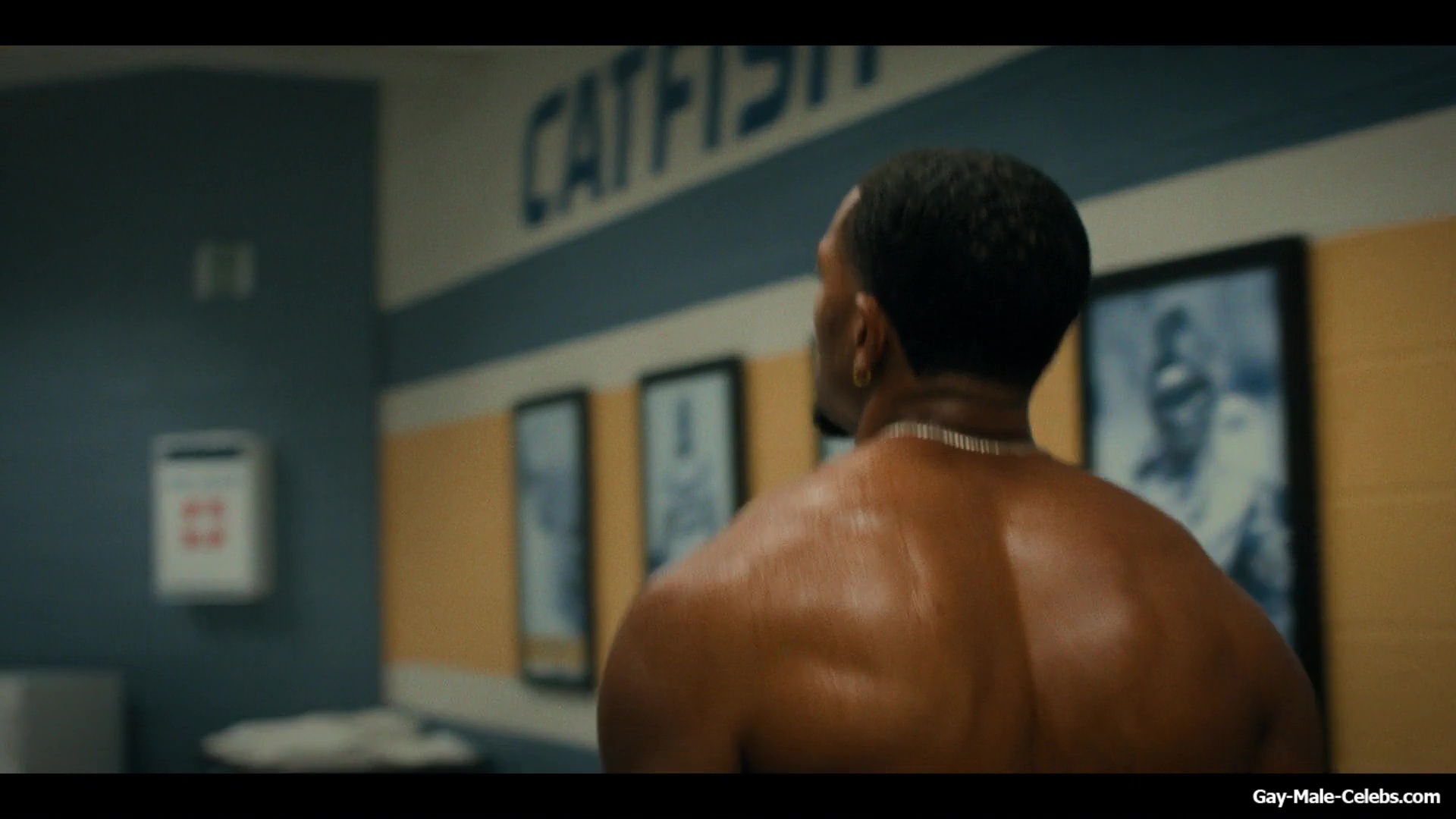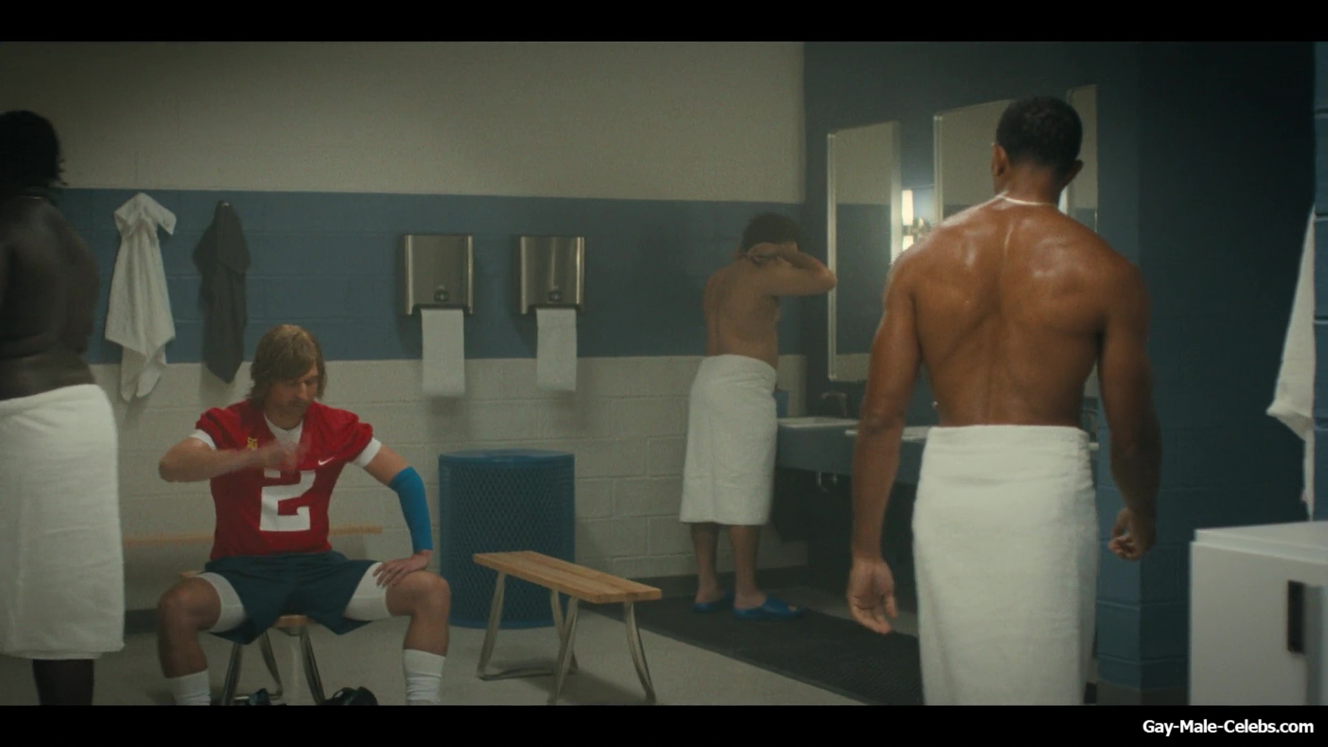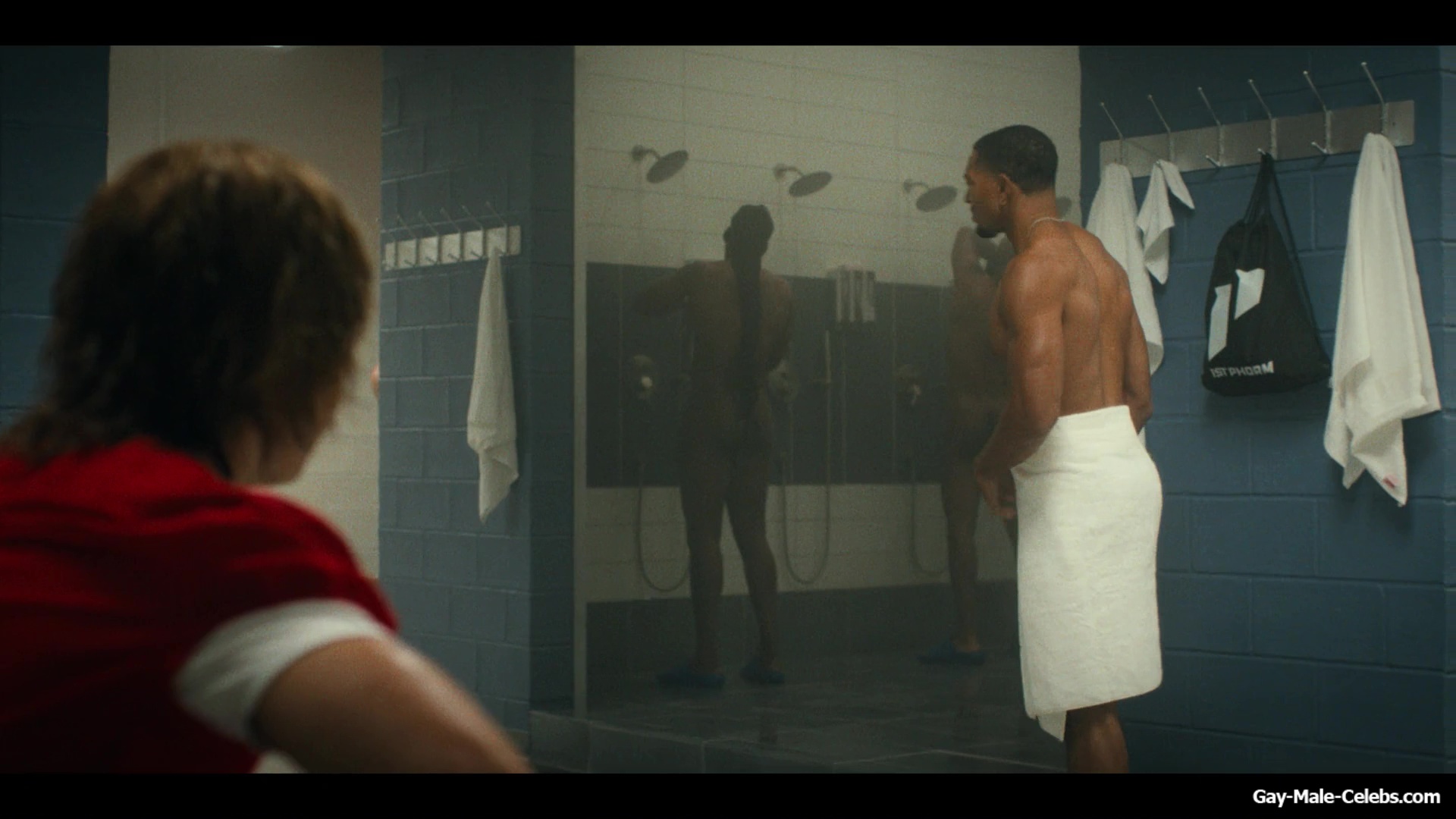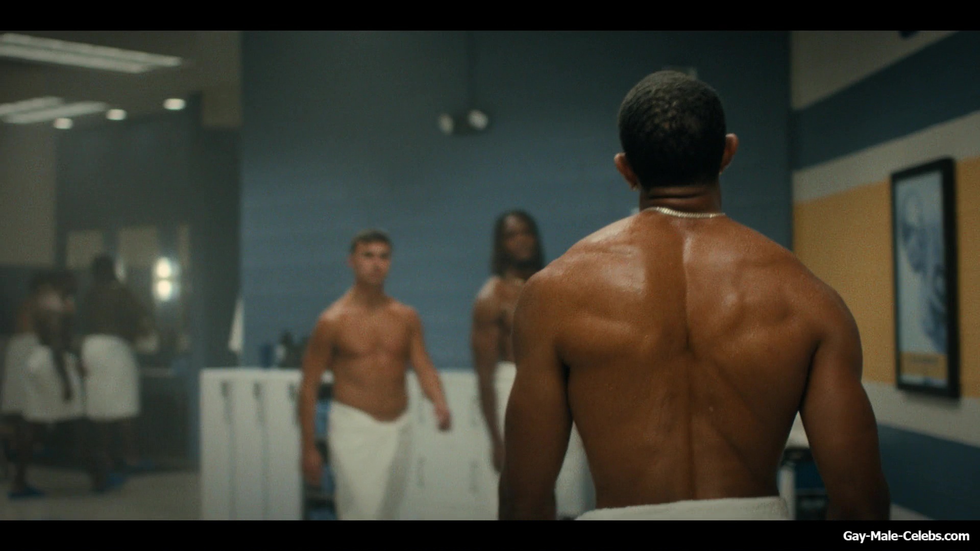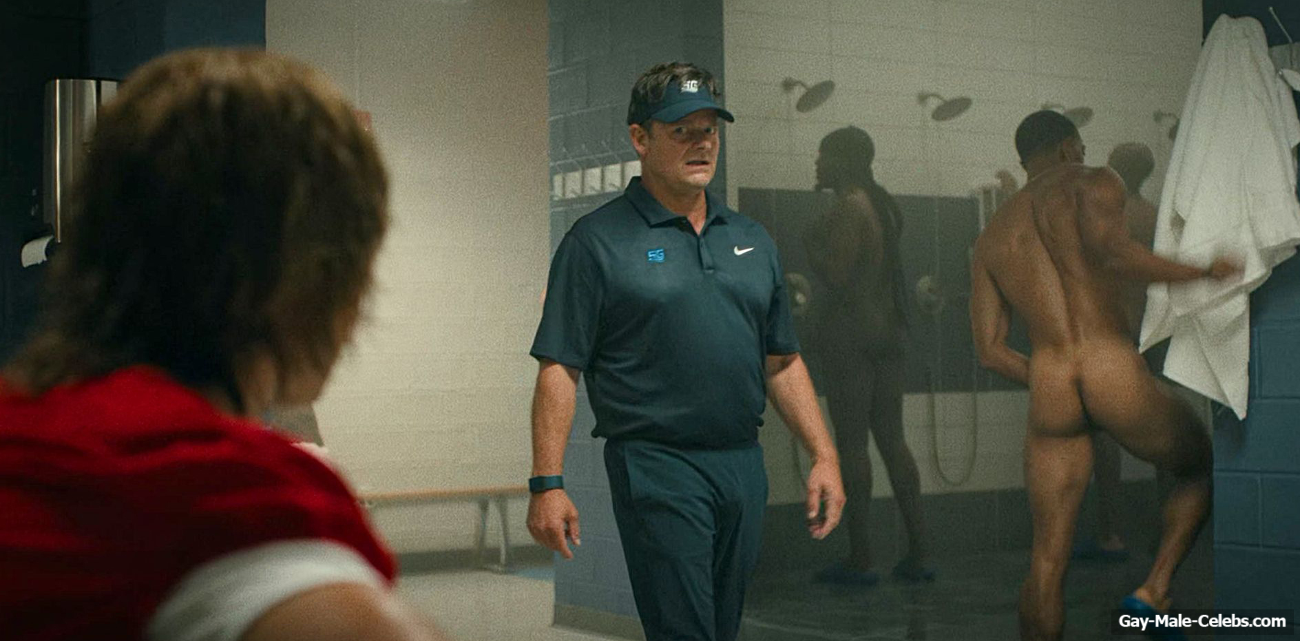 Wow, as soon as you see Xavier Mills’s muscular physique, you’ll immediately fall in love with this black stud. And when he gets naked, we’re sure that no one will be able to hold their dirty thoughts. In “Chad Powers” Xavier Mills showed us his charms in all their glory. While in the locker room, he decides to take a shower and, of course, takes off his towel. Xavier Mills nude firm butt is right in front of us, and all we can do is feast our eyes on it.