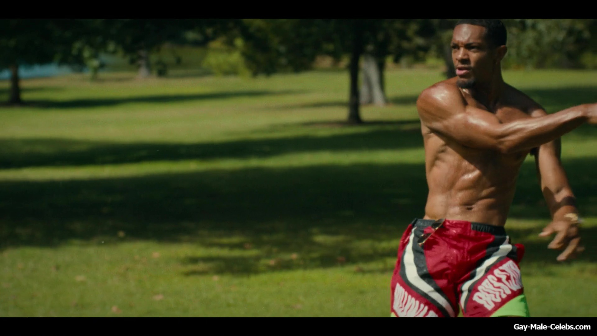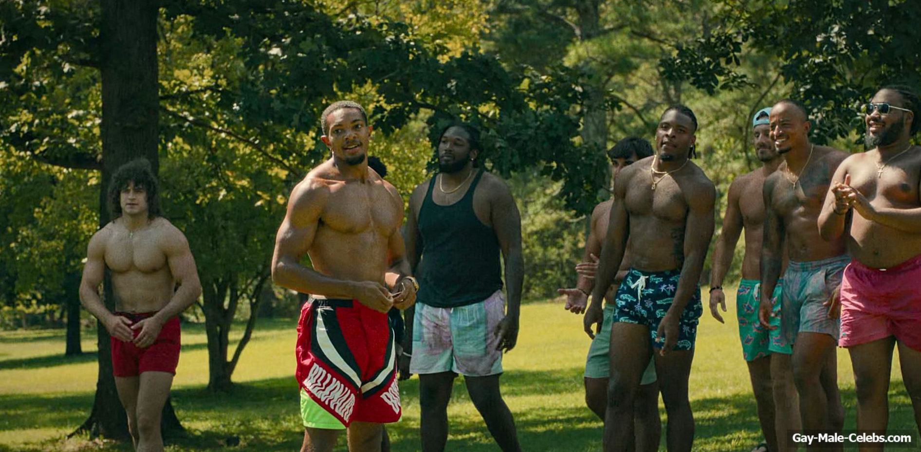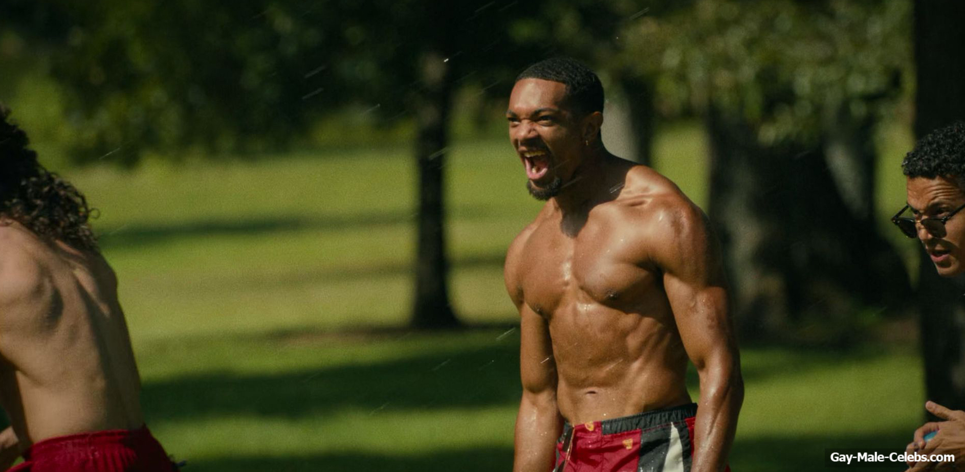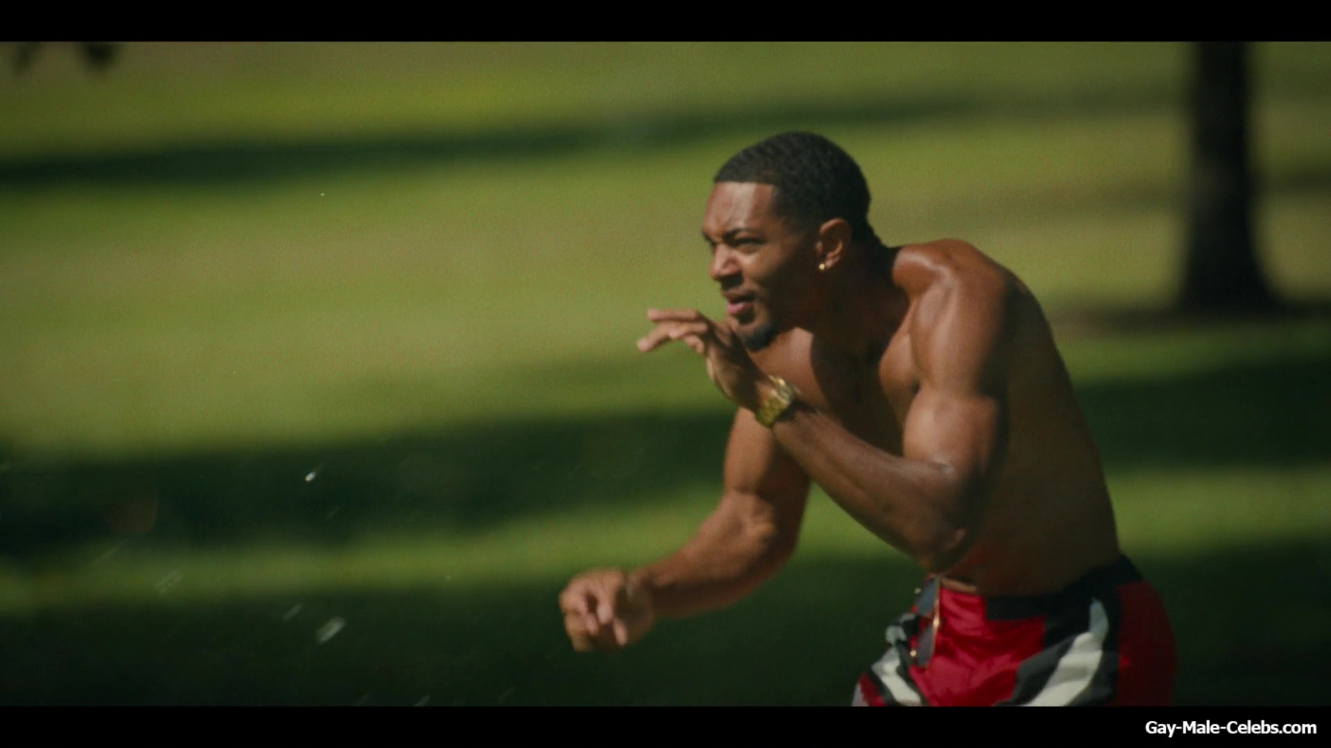 Wow, as soon as you see Xavier Mills’s muscular physique, you’ll immediately fall in love with this black stud. And when he gets naked, we’re sure that no one will be able to hold their dirty thoughts. In “Chad Powers” Xavier Mills showed us his charms in all their glory. While in the locker room, he decides to take a shower and, of course, takes off his towel. Xavier Mills nude firm butt is right in front of us, and all we can do is feast our eyes on it.